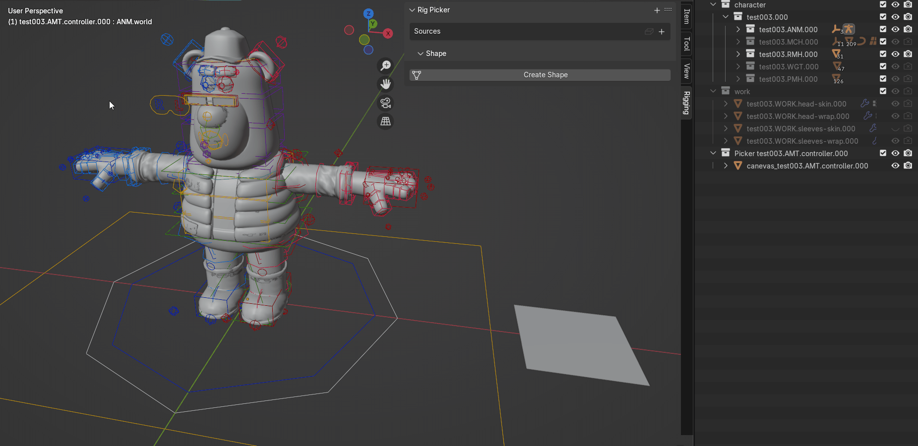 1. Next, select the controllers of your armature, and click on the button "Create Shape". It will create empty meshes with the same names as your controllers, it should already be connected to the good controller of your armature, but for more details on that read the rest of this documentation.