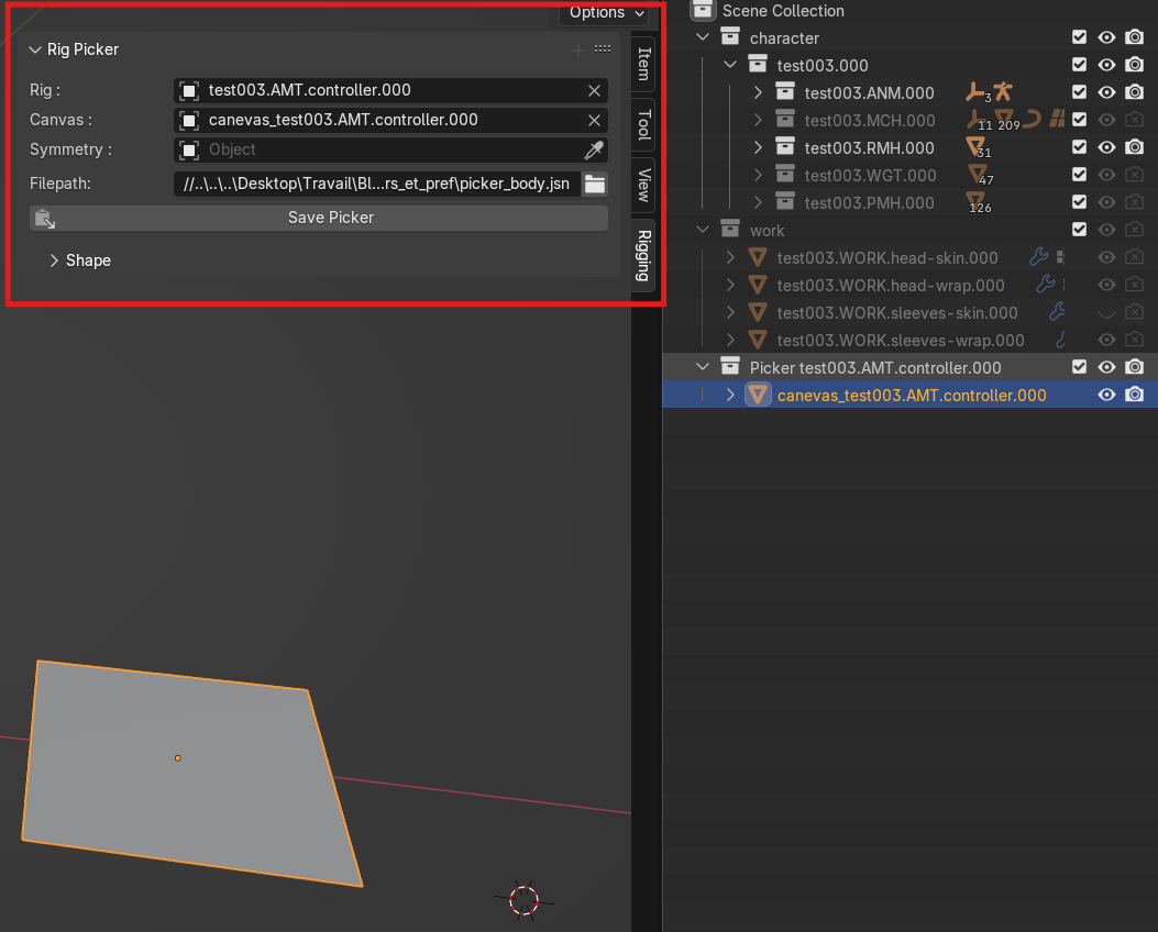 Rig_picker is an OpenGl tool for having a 2d interface for the 3d animators allowing them to pick a controller easily. The addon is drawing 2d shapes inside a dedicated Node Editor Area using the gpu module. You can use multiple pickers for one rig, each picker shapes are in there own collection.