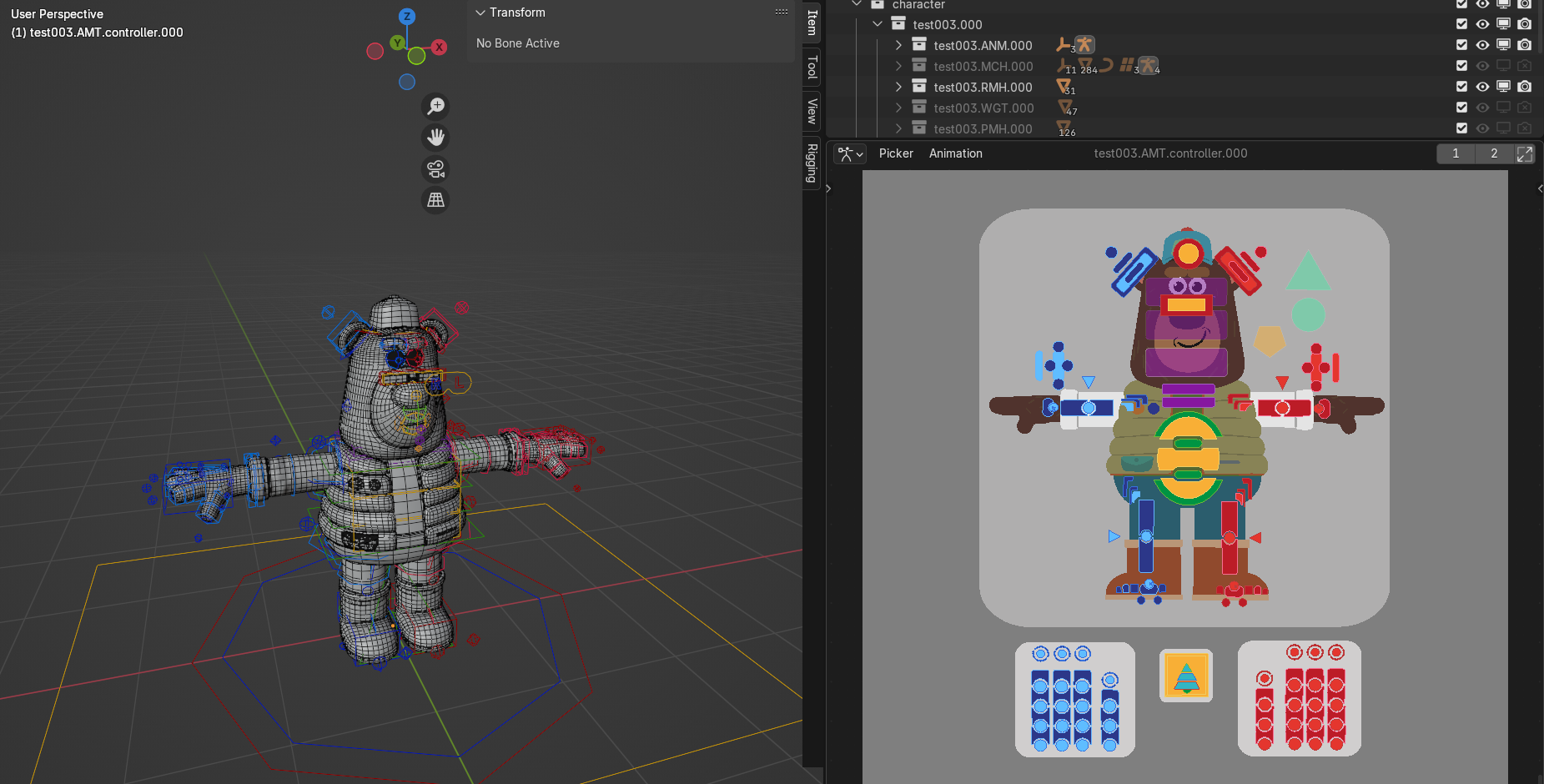 Rig_picker is an OpenGl tool for having a 2d interface for the 3d animators allowing them to pick a controller easily. The addon is drawing 2d shapes inside a dedicated Node Editor Area using the gpu module. You can use multiple pickers for one rig, each picker shapes are in there own collection.